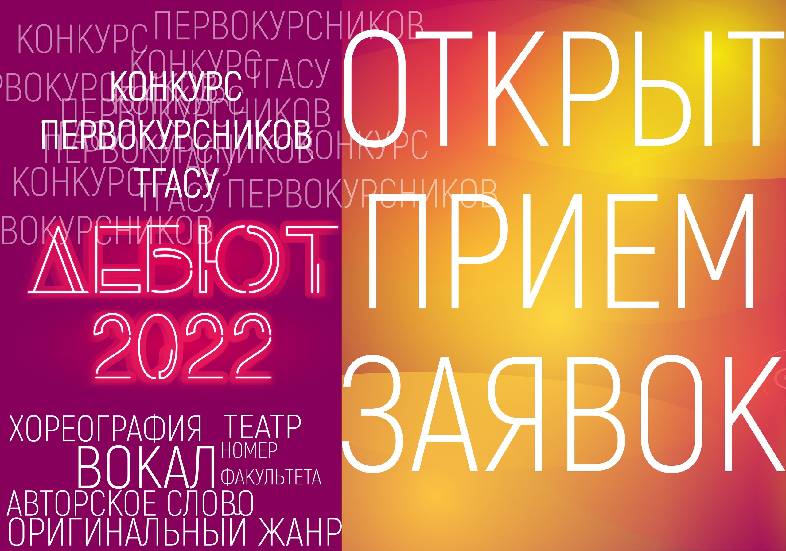 Вузовский клуб Томского государственного архитектурно-строительного университета объявил о старте приема заявок для участия в университетском конкурсе первокурсников «Дебют-2022». Концертная часть состоится 21 октября в актовом зале вуза.