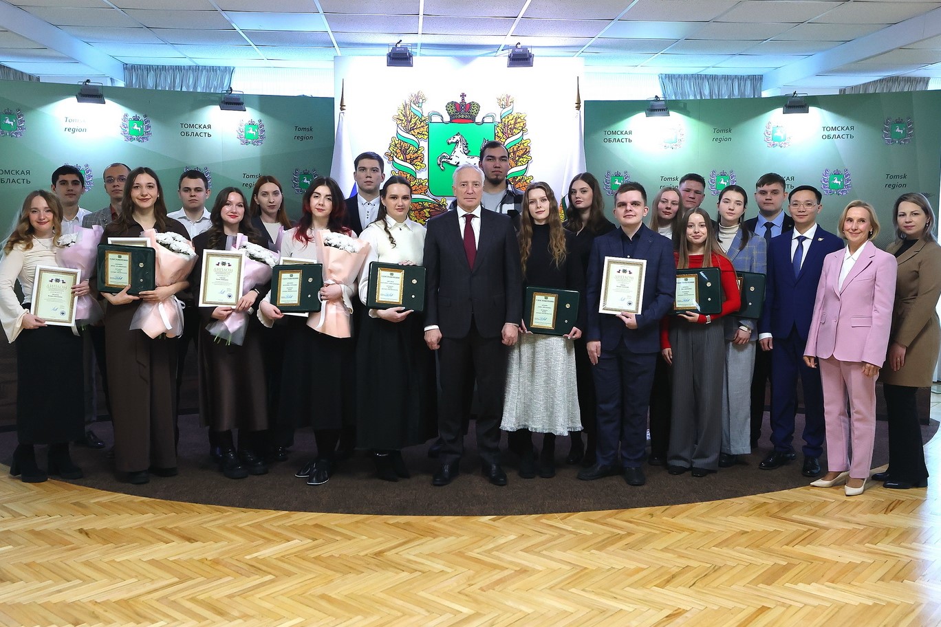 – На них есть девиз: «Знание. Стремление. Успех». Пусть эти три слова станут символом вашей дальнейшей жизни. Пусть воплощаются идеи, реализуются проекты, а ваши имена войдут в историю российской науки! Ведь каждый ваш успех – это шаг вперёд для всей страны! – подчеркнул Владимир Мазур и поздравил лауреатов с грядущим Днём российского студенчества.