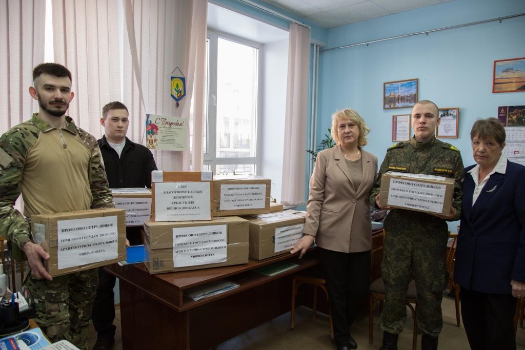 Накануне Дня защитника Отечества из первого корпуса Томского государственного архитектурно-строительного университета были отправлены посылки с гуманитарным грузом в зону Специальной военной операции.